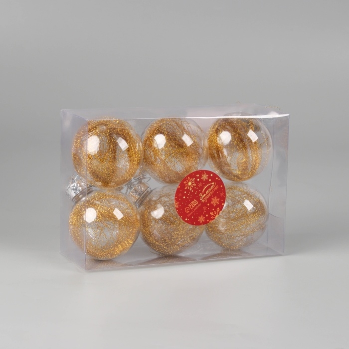 Набор шаров пластик d-6 см, 6 шт "Дончо" золото прозрачный