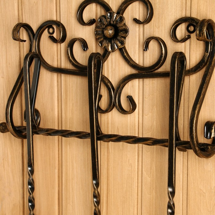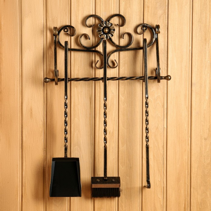 Каминный набор КН-6-5 настенный, кованый, цвет бронза, 3 предмета: кочерга, совок, метёлка