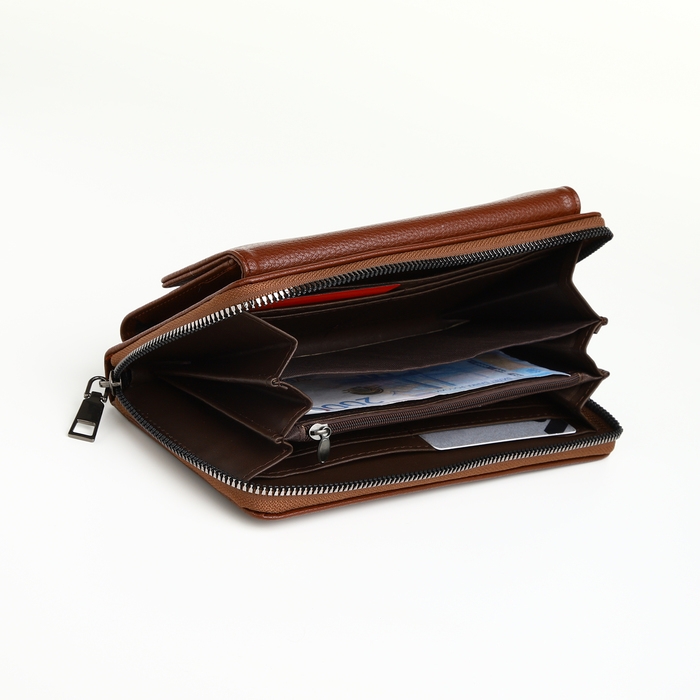 Портмоне-клатч мужской на молнии TEXTURA, цвет коричневый