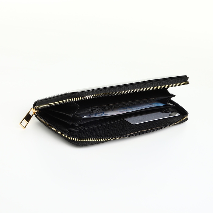 Кошелёк женский на молнии, лакированный, цвет чёрный