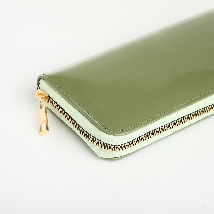 Кошелёк женский на молнии, лакированный, цвет зелёный
