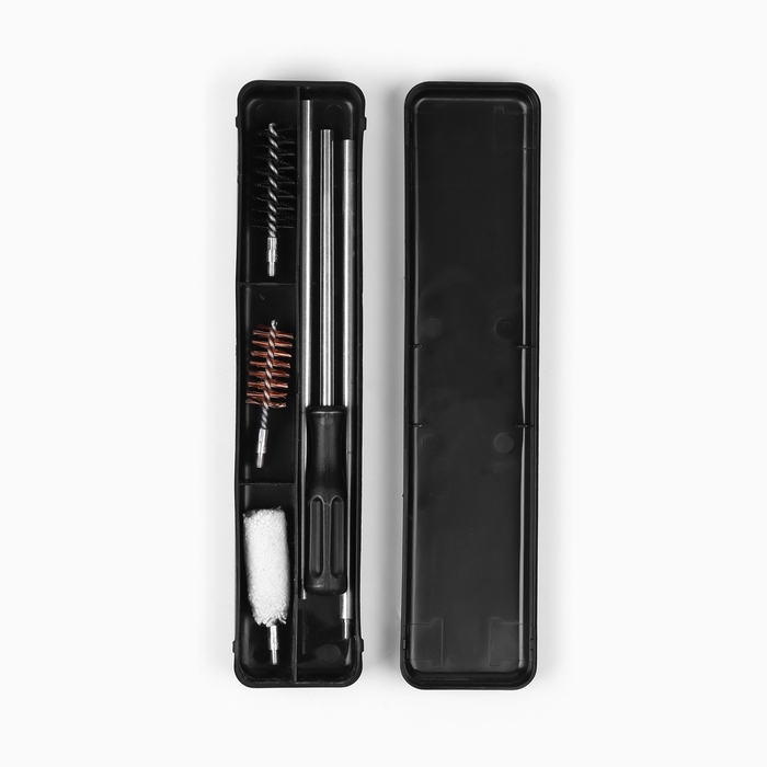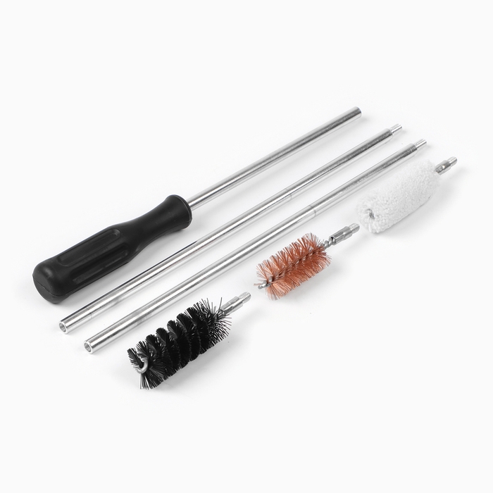 Набор предназначен для чистки оружия 12 калибра. Опытные охотники и солдаты знают, что правильно стреляет только чистое оружие. Ухоженный ствол не даёт осечек и постоянно показывает точную и кучную стрельбу. В комплекте для чистки оружия входит тресоставный шомпол из пружинной стали с резьбовыми соединениями, металлический спиральный ершик с латунной резьбой, нейлоновый щетинный ершик с латунной резьбой, пуховой ершик с латунной резьбой. Аксессуар для ухода за оружием изготовлен из высококачественных материалов. Удобный и надежный набор для чистки и ухода за оружием.