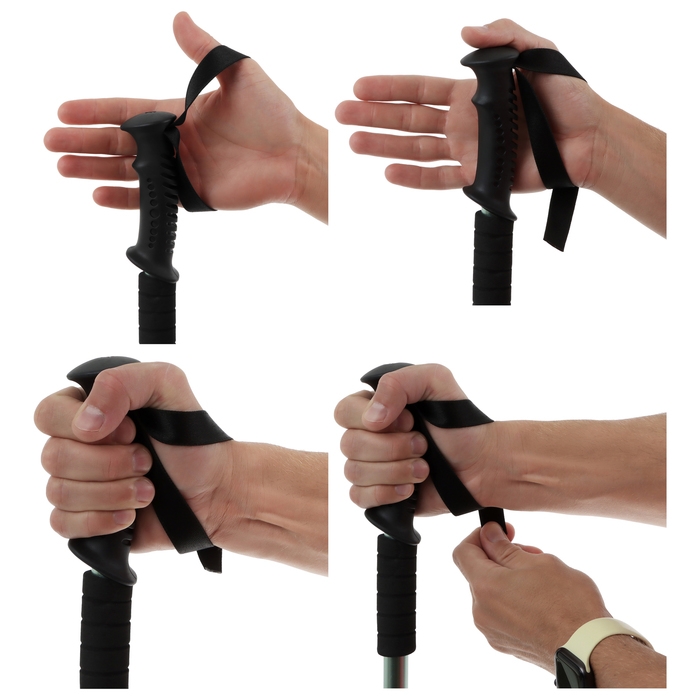 - Темляк огибает запястье, обеспечивая опору для руки и предотвращая потерю палки во время движения. Конструкция петли позволяет отрегулировать необходимую длину.