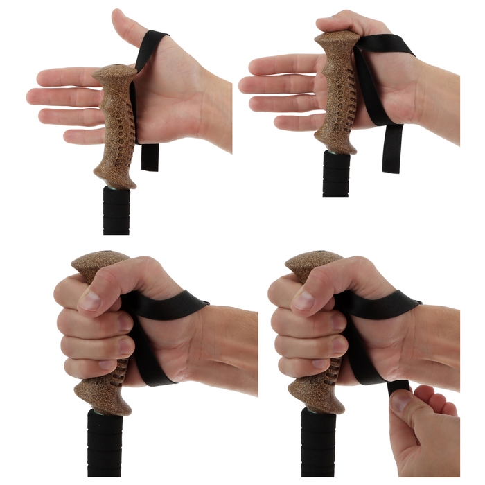 - Темляк огибает запястье, обеспечивая опору для руки и предотвращая потерю палки во время движения. Конструкция петли позволяет отрегулировать необходимую длину.