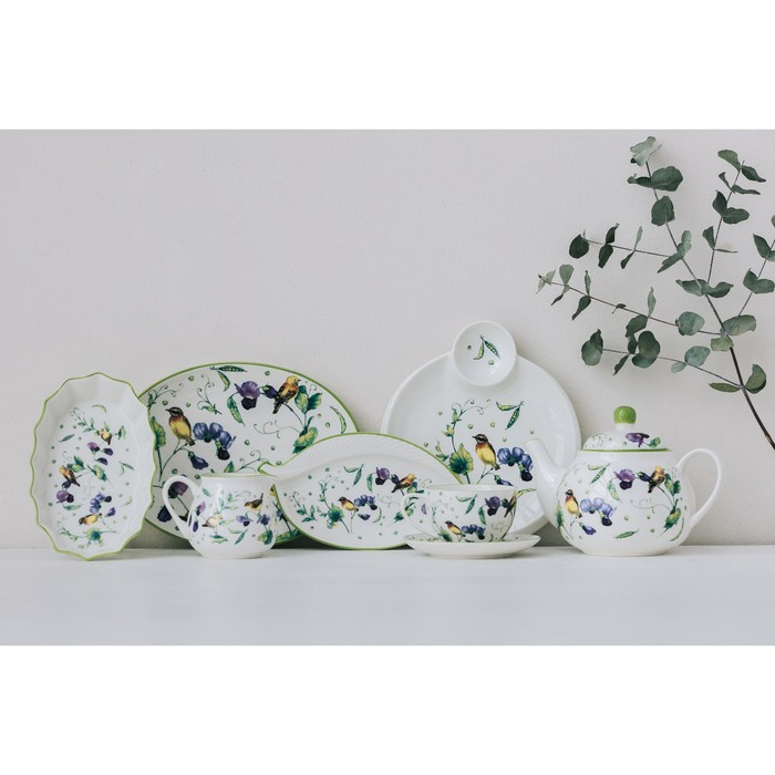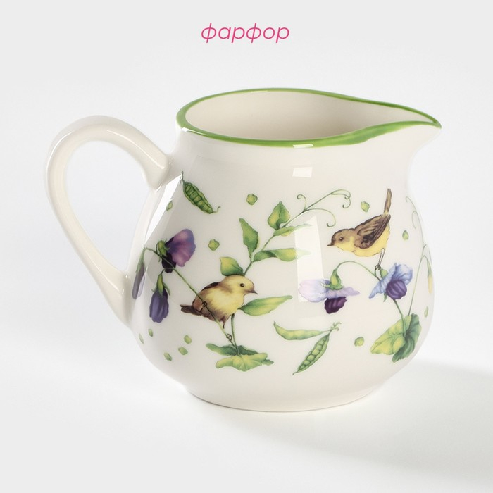 Молочник фарфоровый Доляна «Зелёный сад», 300 мл, 11,5×8×8 см