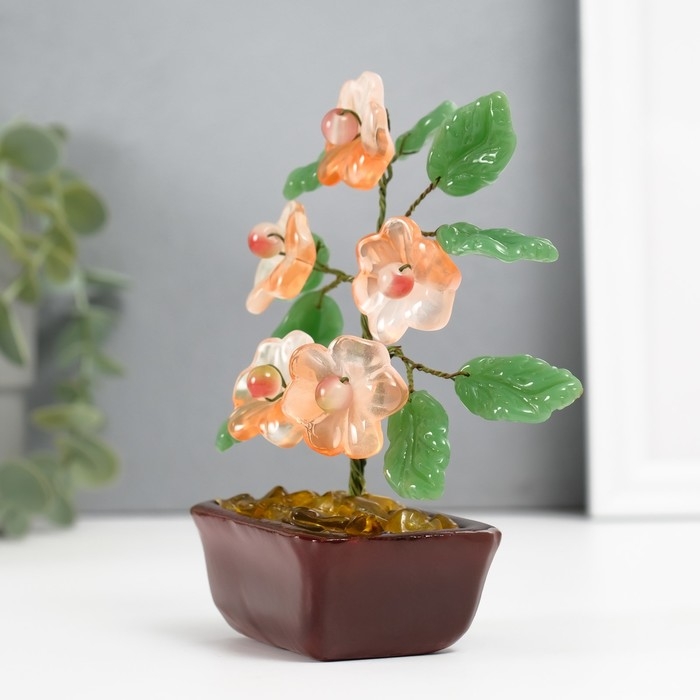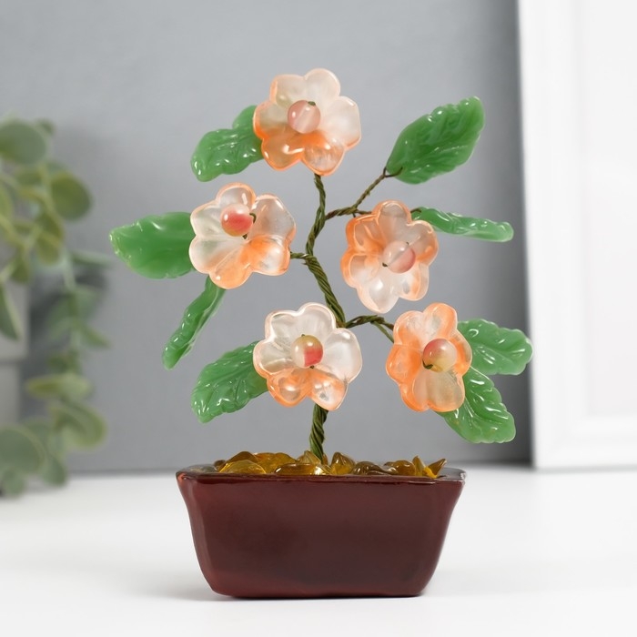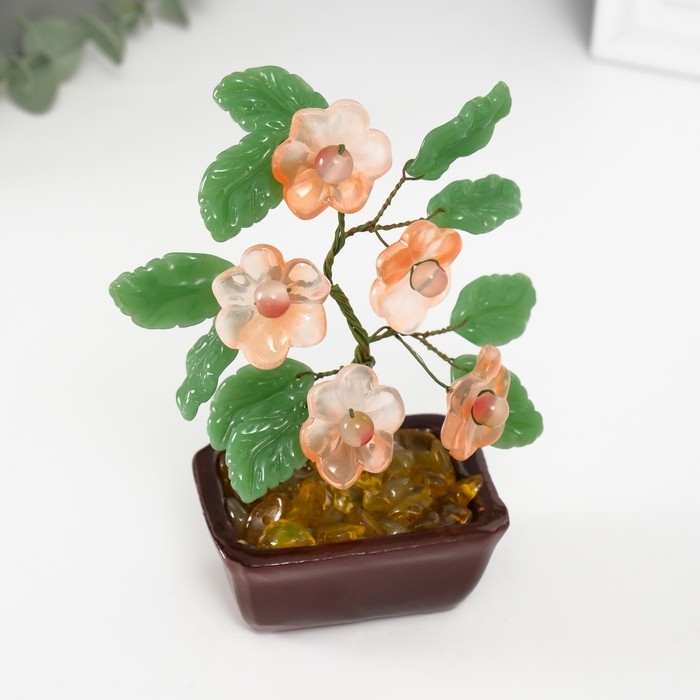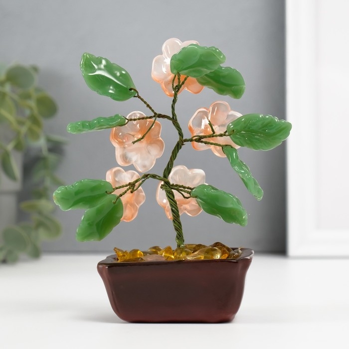 Сувенир бонсай "Цветочное дерево" розовый 5 цветков 7х5,2х13 см
