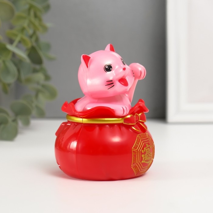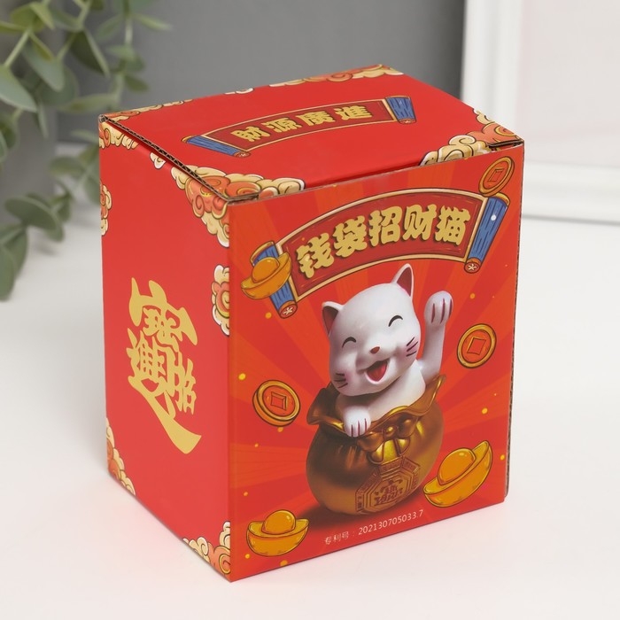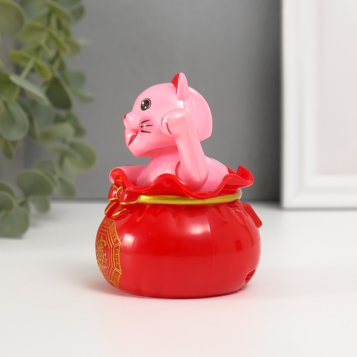 Маятник пластик "Счастливый кот в денежном мешке" белый 7х7х9 см