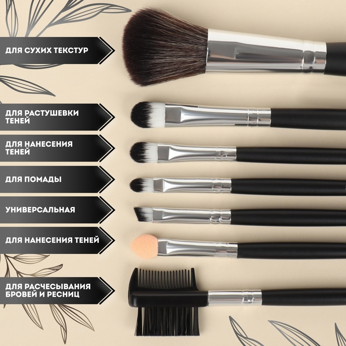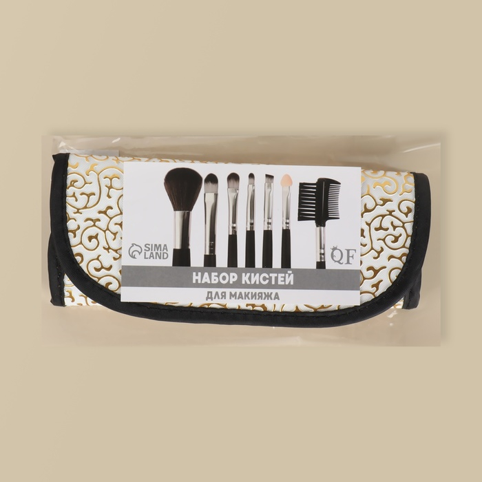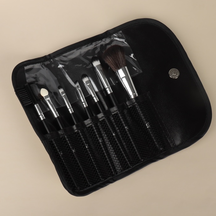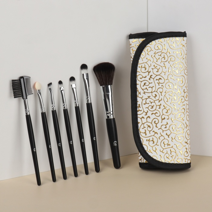 Набор кистей для макияжа «Вензель», 7 предметов, чехол на кнопке, цвет золотистый/чёрный