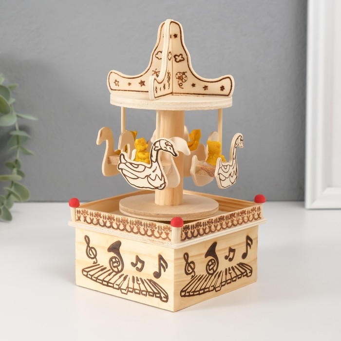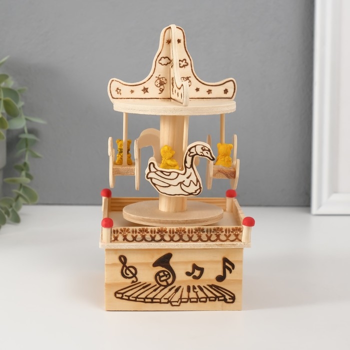 Сувенир дерево музыкальный механический "Карусель - мишка на лебеде" 10х10х19 см