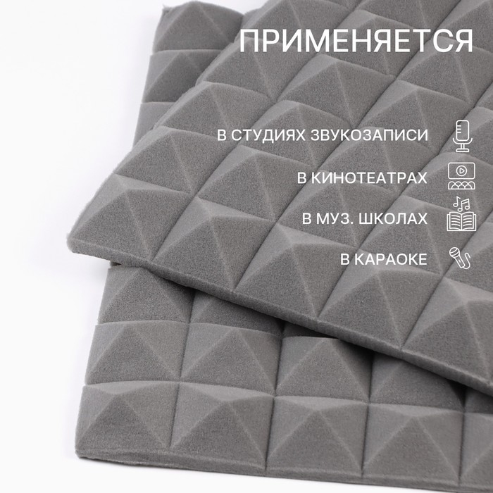 Шумопоглощающая панель - акустический поролон самоклеящийся, пирамида, 50 х 5 см, серый