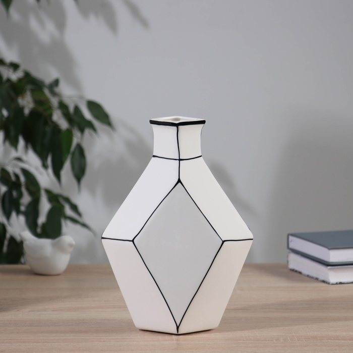 Ваза керамика настольная "Пикассо" (ручная роспись) грани горлышко, 24х16 см, чёрно-белый
