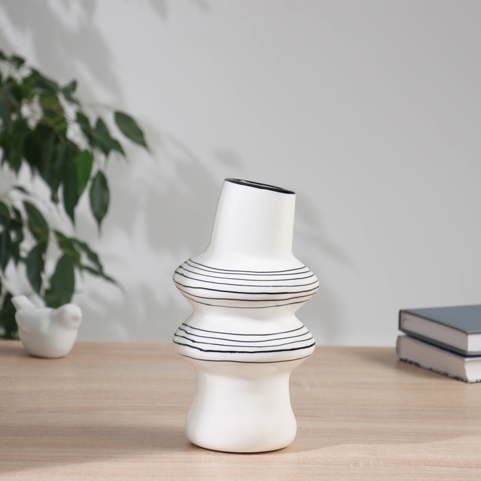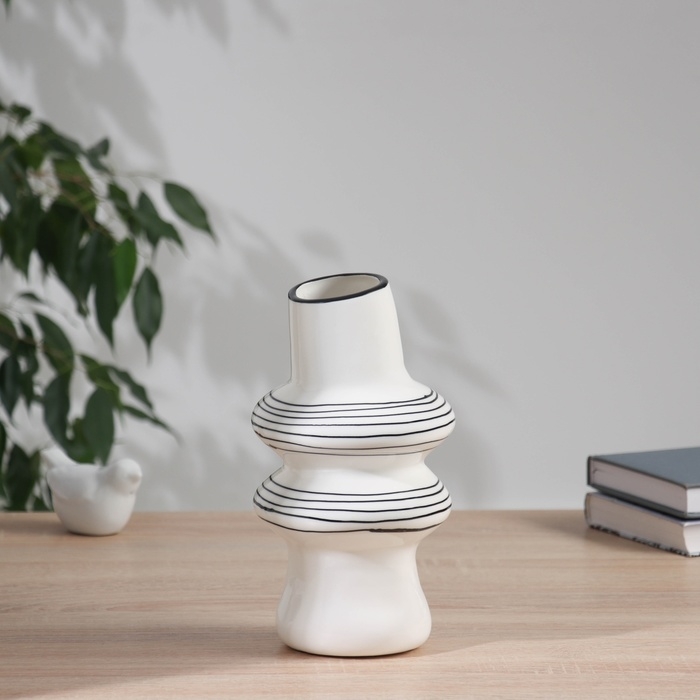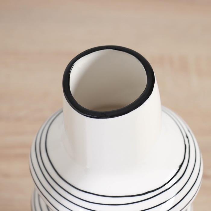 Ваза керамика настольная "Пикассо" (ручная роспись) кольца в полоску, 21х10 см, чёрно-белый 104551