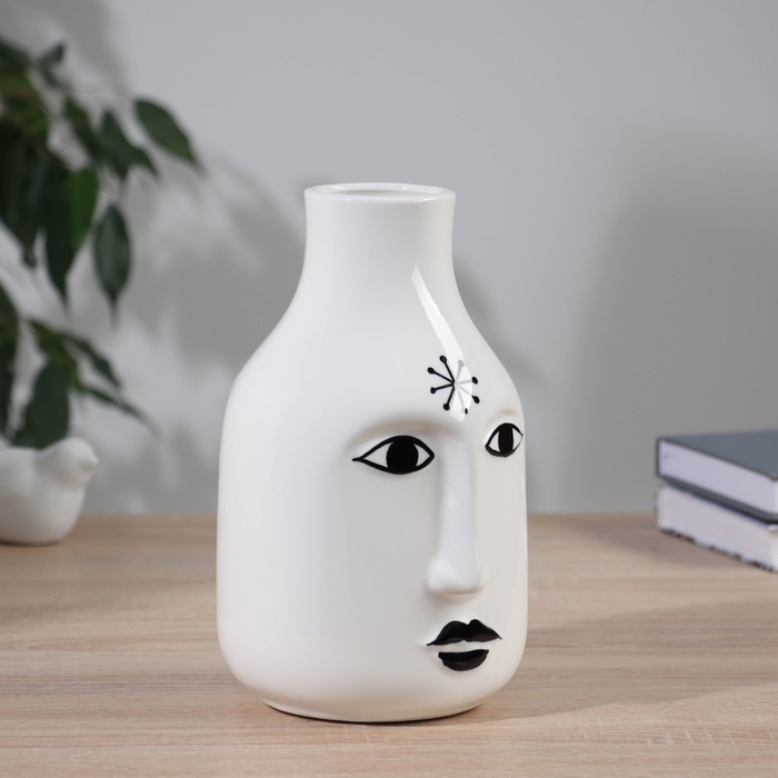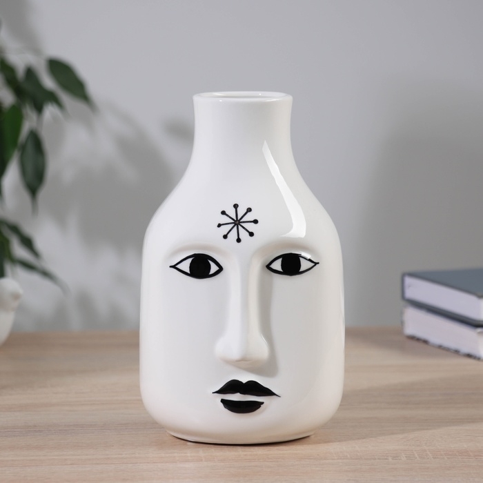 Ваза керамика настольная "Пикассо" (ручная роспись) снежинка, 21х11 см, чёрно-белый