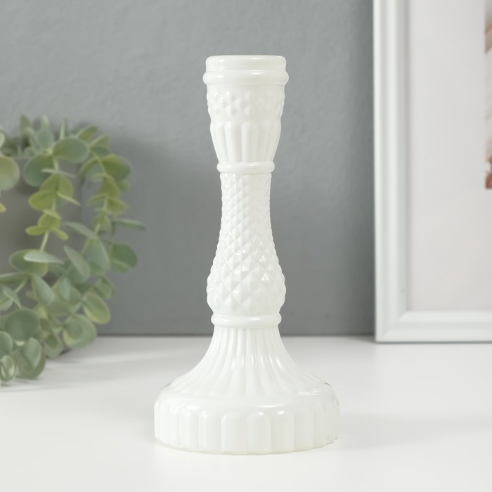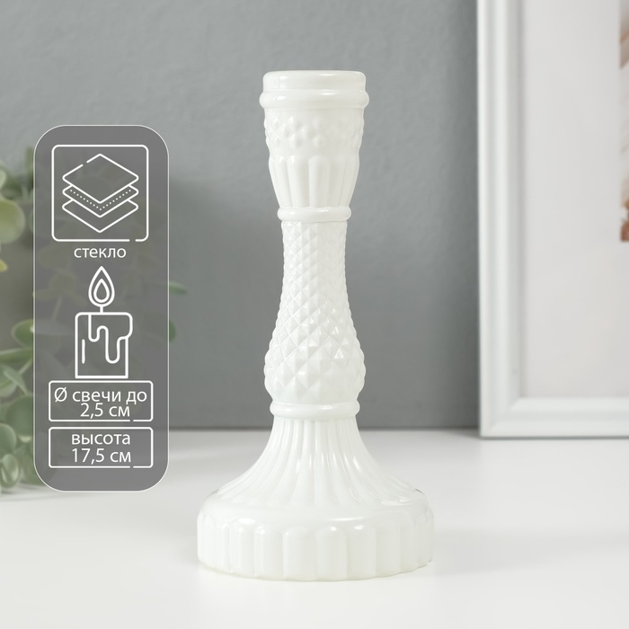 Подсвечник стекло на 1 свечу "Геката" белый d=2,5 см 8х8х17,5 см