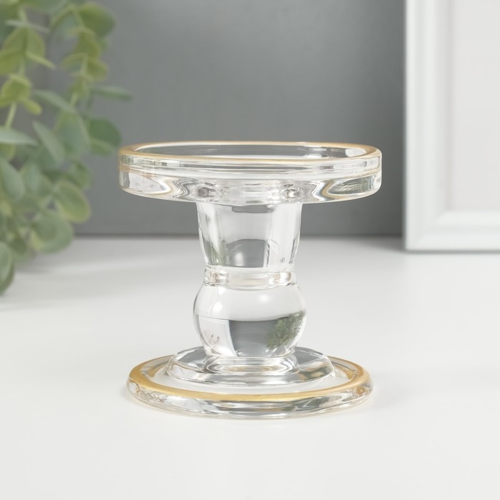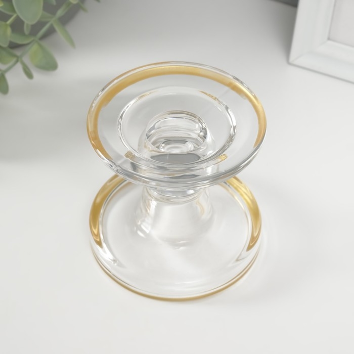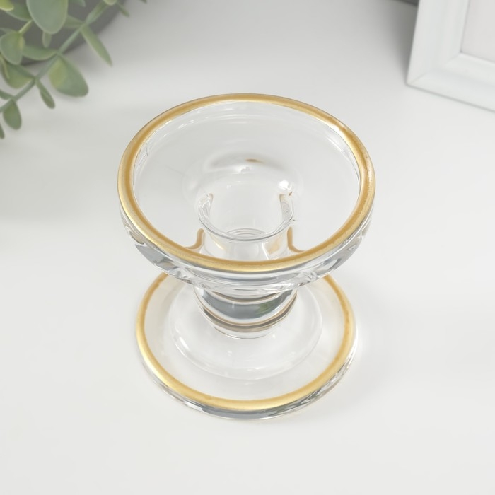 Подсвечник стекло на 1 свечу "Креманка" с золотом d=2 см 8,5х8,5х8,5 см