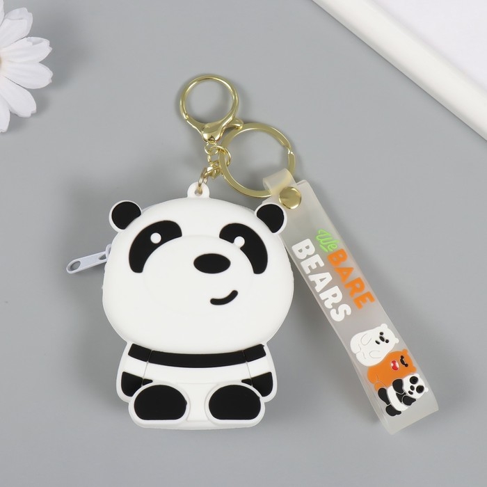 Брелок кошелёк с карабином, ремешком силикон "Панда" 3х7,5х9 см