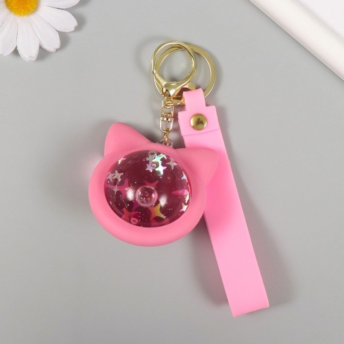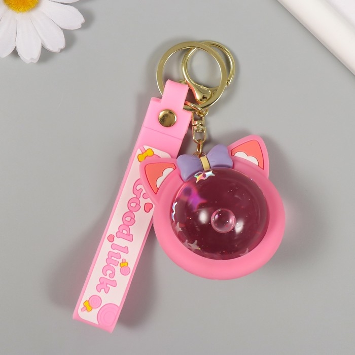Брелок резина с карабином, ремешком "Лунный кот" водный с блёстками 6,5х6х4 см