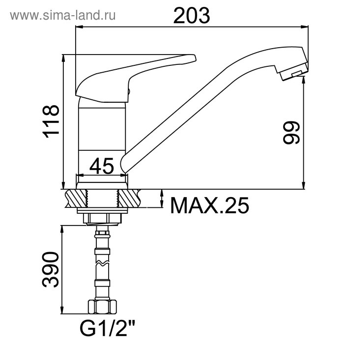 Смеситель для кухни Accoona A4260, однорычажный, латунь, хром
