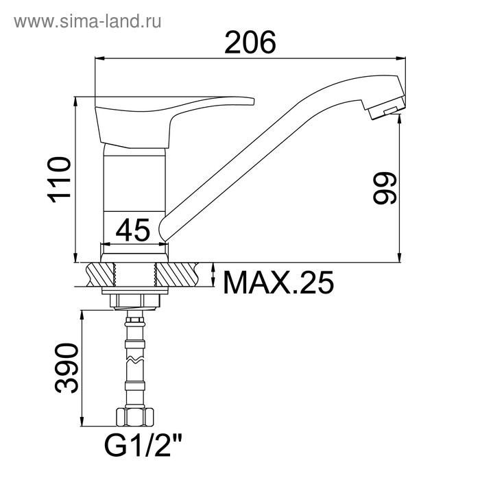 Смеситель для кухни Accoona A5261, однорычажный, силумин, хром