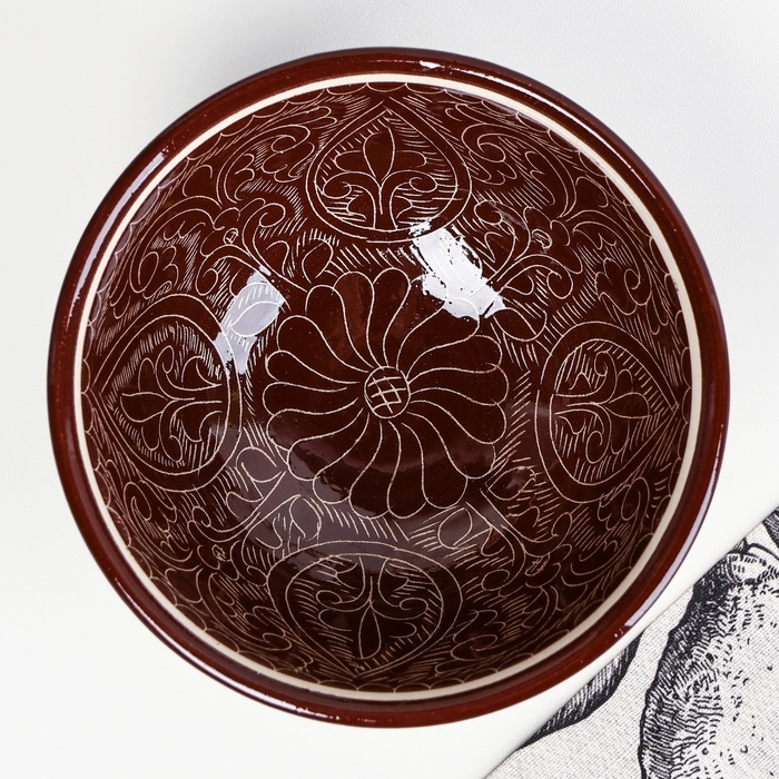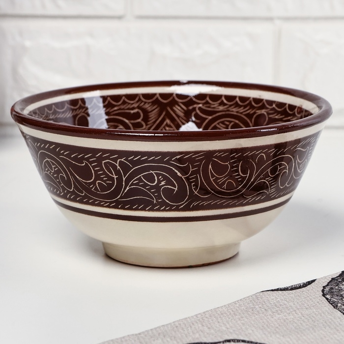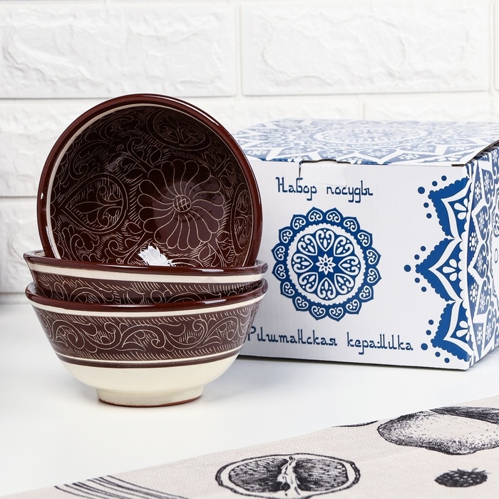 Набор салатников Риштанская керамика "Узоры", 15см, 3 шт, в подарочной упаковке, коричневые