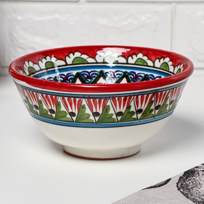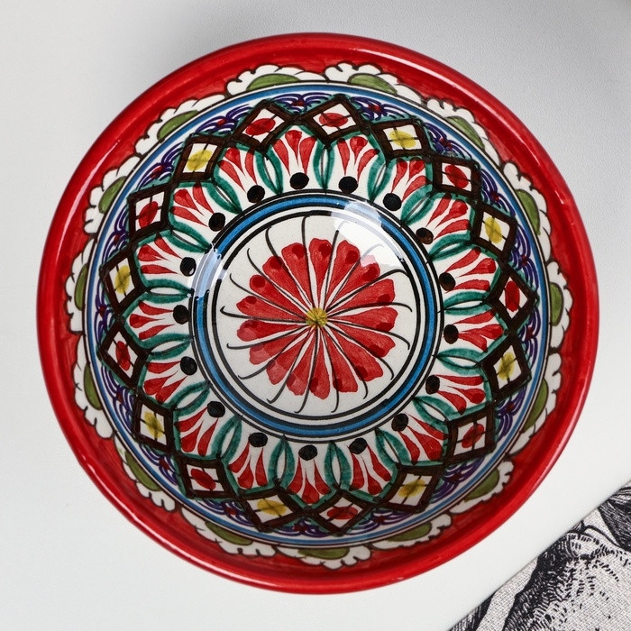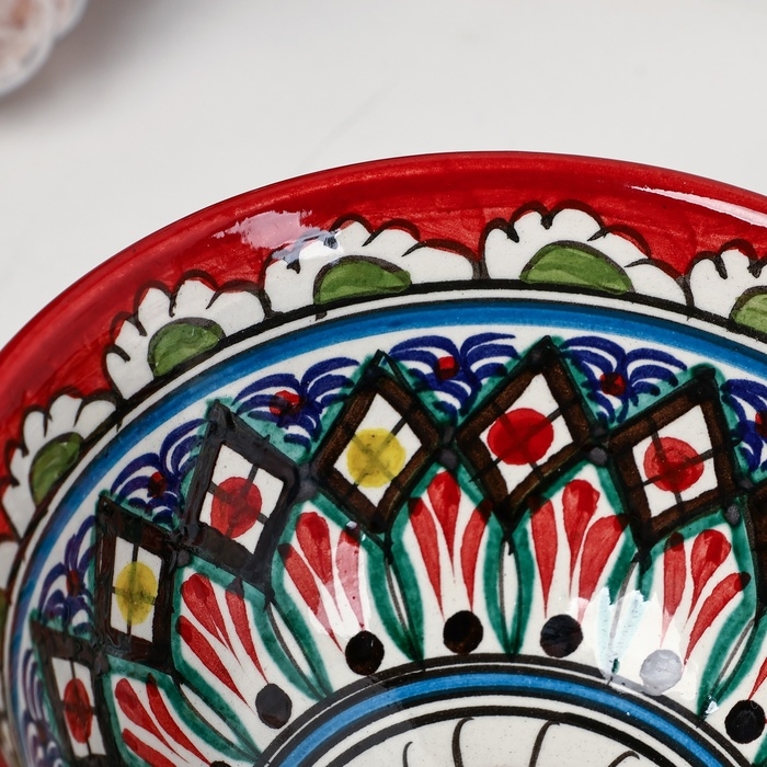 Набор салатников Риштанская керамика "Узоры", 15 см, 3 шт, в подарочной упаковке, красные