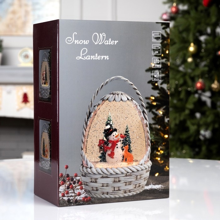 Фигура светодиодная «Зимние искорки», 20.3х15х9 см, музыка, батарейки ААх3 (не в комплекте), USB, свечение тёплое белое