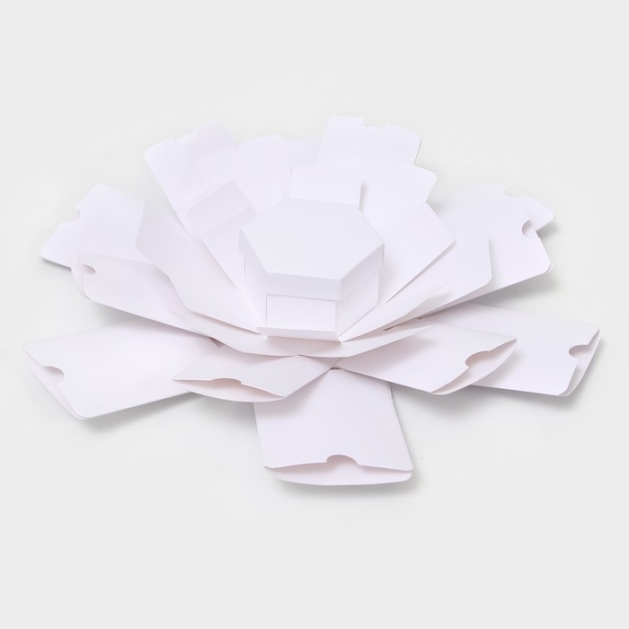 Особенностью этой коробки является её конструкция. Она состоит из нескольких секций, которые складываются одна в другую, образуя компактный прямоугольник. При раскрытии коробки эти секции разворачиваются, создавая эффект раскладывания. Это добавляет элемент неожиданности и интриги, делая процесс открытия подарка ещё более захватывающим.