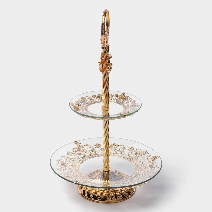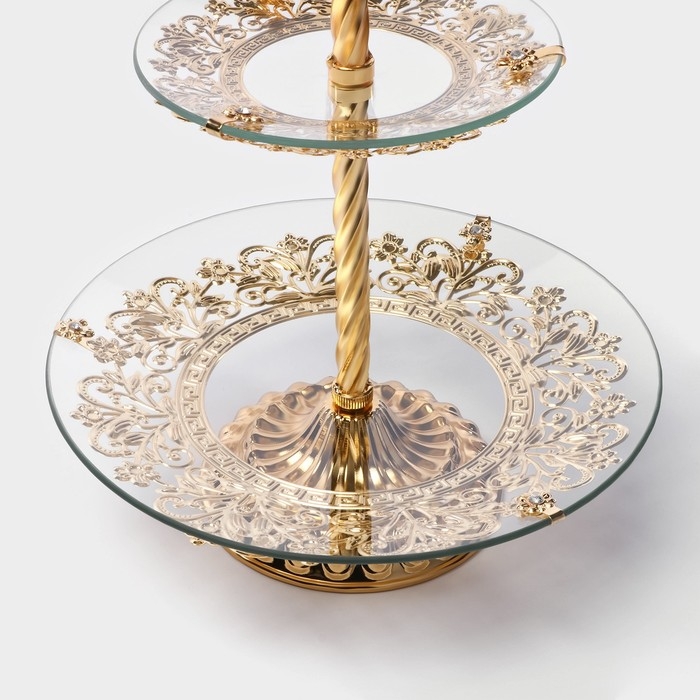 Этажерка - фруктовница круглая «Расцвет», 2 яруса, d=18/29 см, высота 48 см, стекло