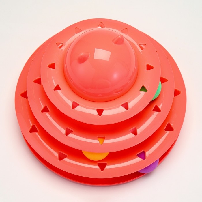 Игровой комплекс "Пижон" для кошек с 3 шариками, 24,5 х 24,5 х 13 см, розовый