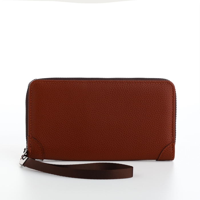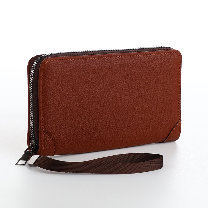Портмоне мужское на молнии, отдел для карт, монет, цвет коричневый