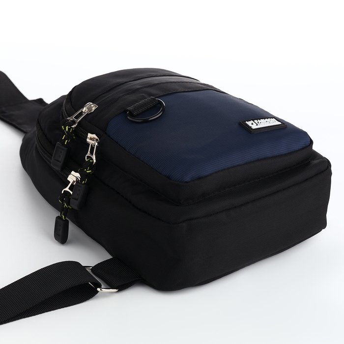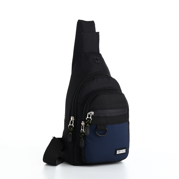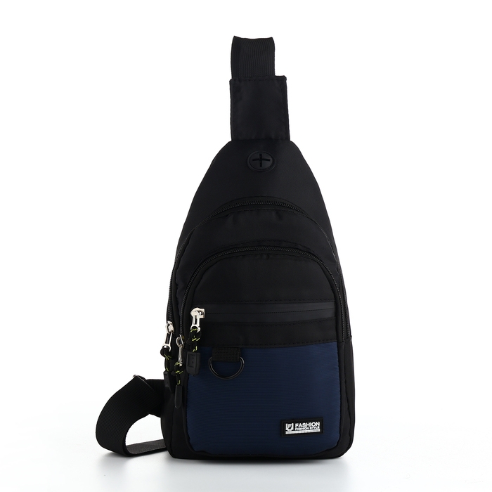 Сумка-слинг из текстиля, 3 наружных кармана, цвет синий