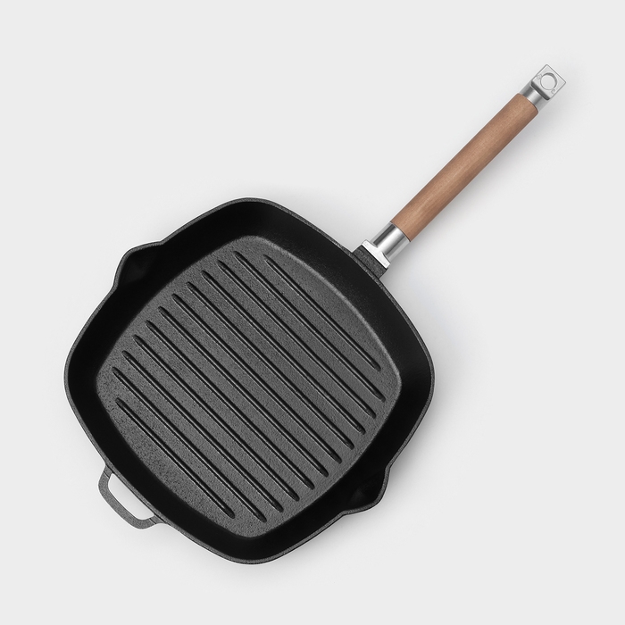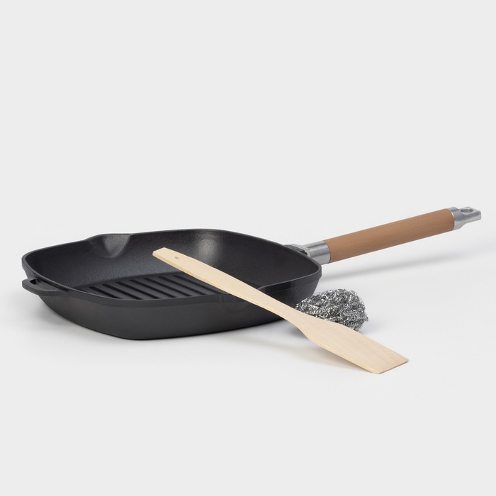 Сковорода-гриль чугунная Wild Kitchen, 26×26 см, лопатка и губка в комплекте