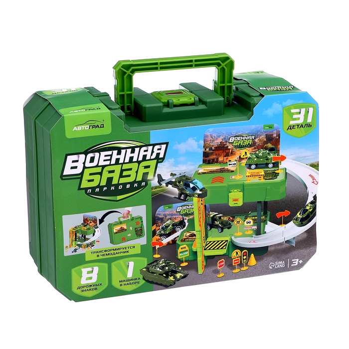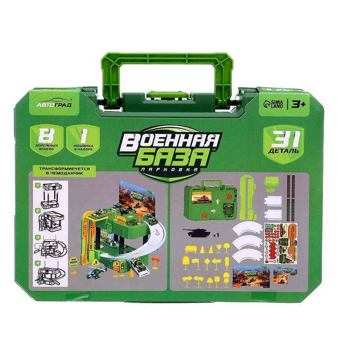 Парковка «Военная база», 1 машинка, 8 дорожных знаков, 31 деталь