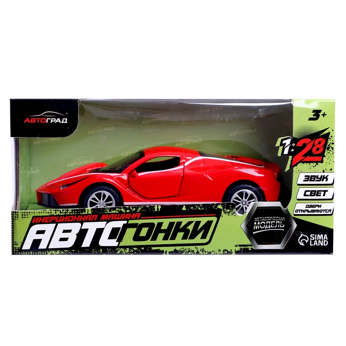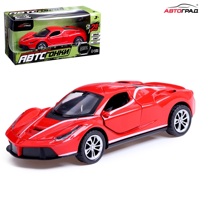 Машина металлическая «Купе», 1:28, световые и звуковые эффекты, открываются двери, цвет красный
