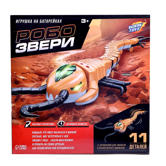 Животное «Многоножка», световые эффекты, работает от батареек, 11 деталей, цвет оранжевый