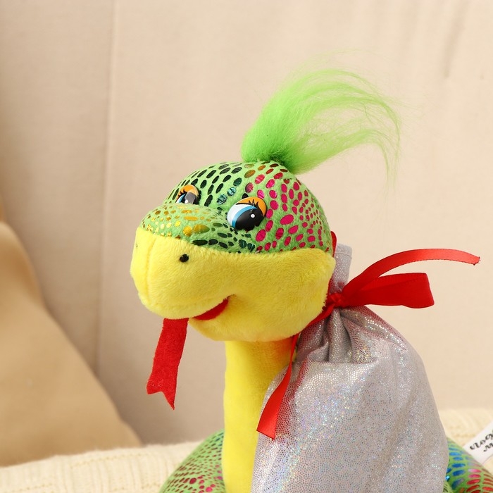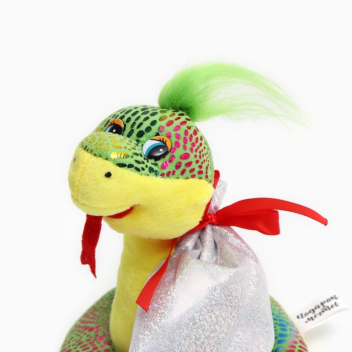 Мягкая игрушка «Змея», с подарочным мешком, 15 см, цвет зелёный