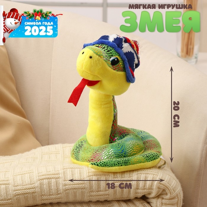 Мягкая игрушка «Змея», в полосатой шапке, 20 см