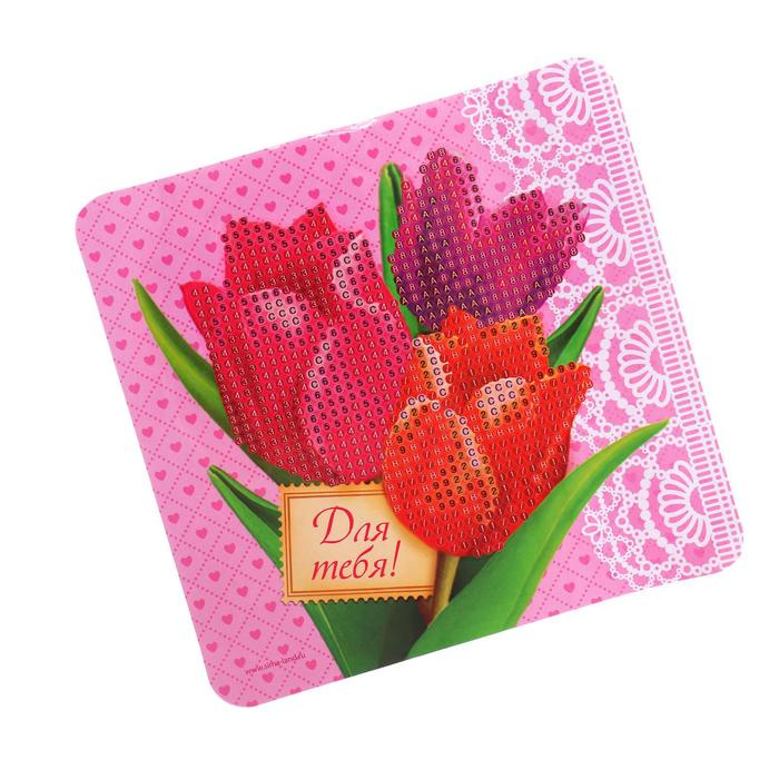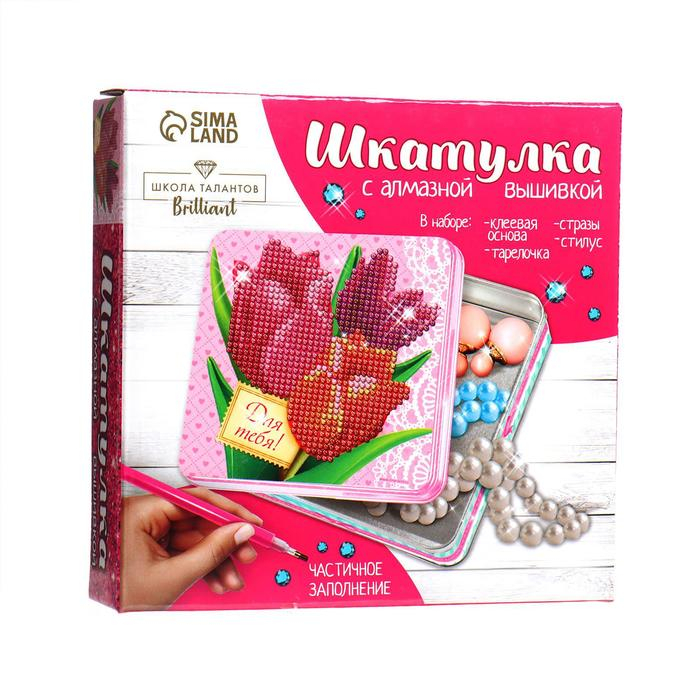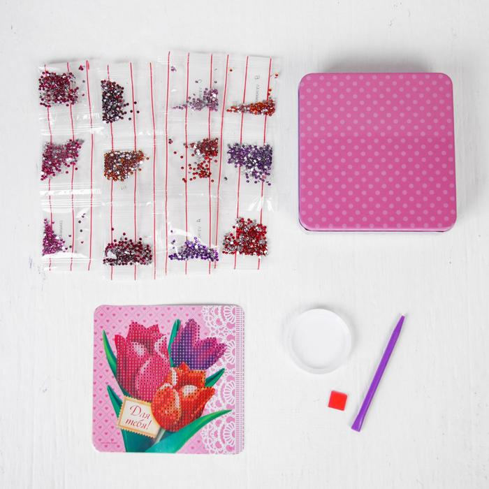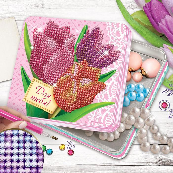 Алмазная мозаика с частичным заполнением на шкатулке «Тюльпаны», 14 х 14 см