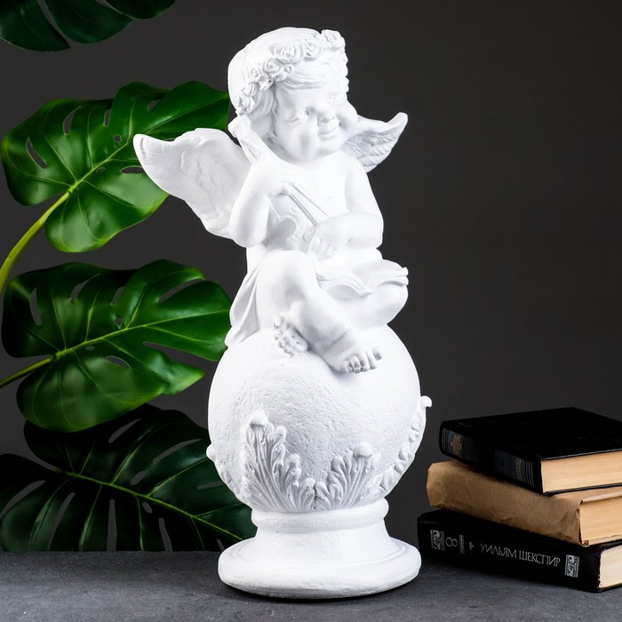Фигура "Ангел со скрипкой улыбчивый" белый 26х21х46см