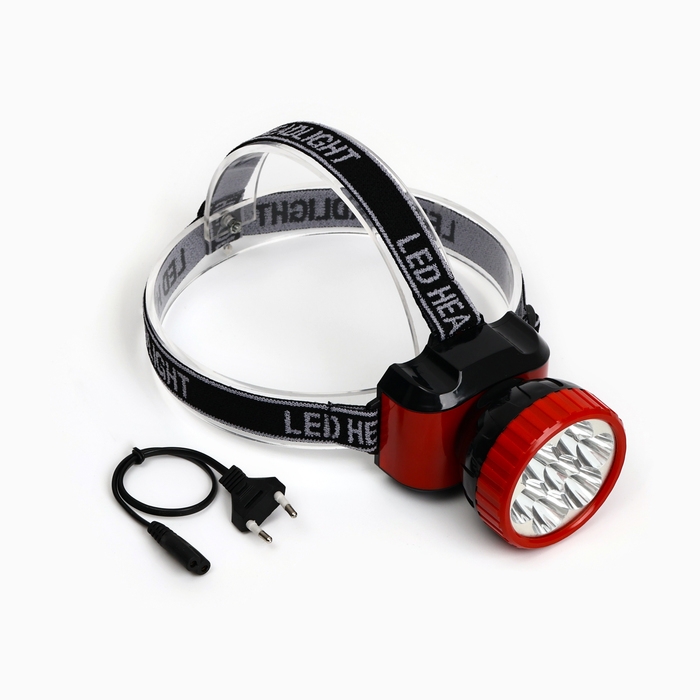 Фонарь налобный аккумуляторный, 9 х 7 см, красный