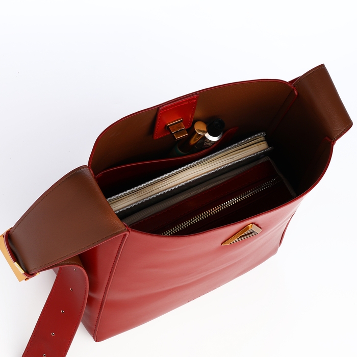 - Элегантный дизайн: классический бордовый цвет и бронзовая фурнитура придают сумке утончённый вид, который идеально сочетается с любым гардеробом.
