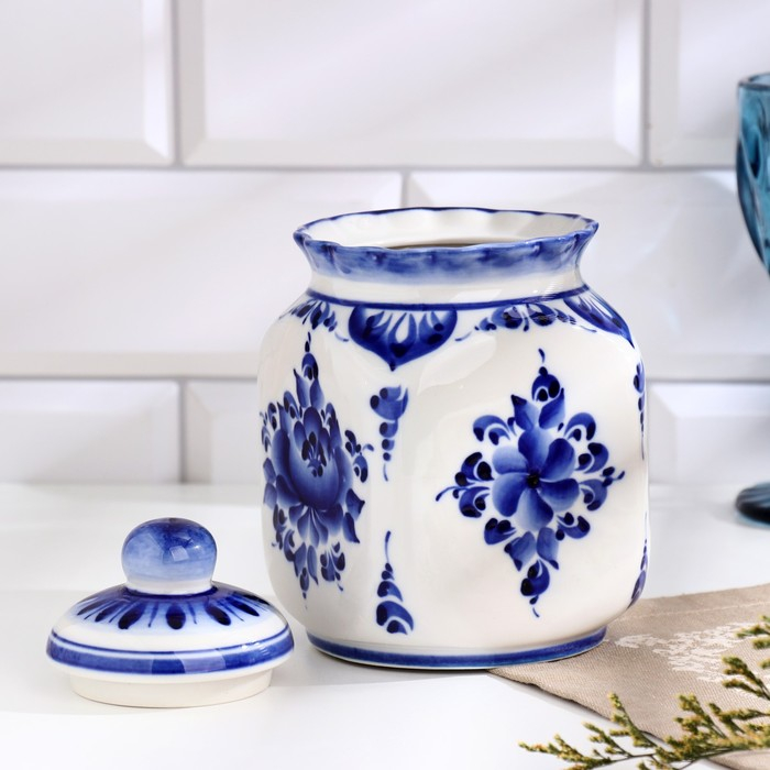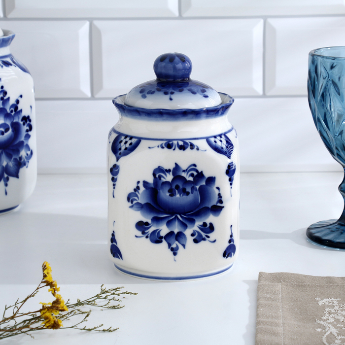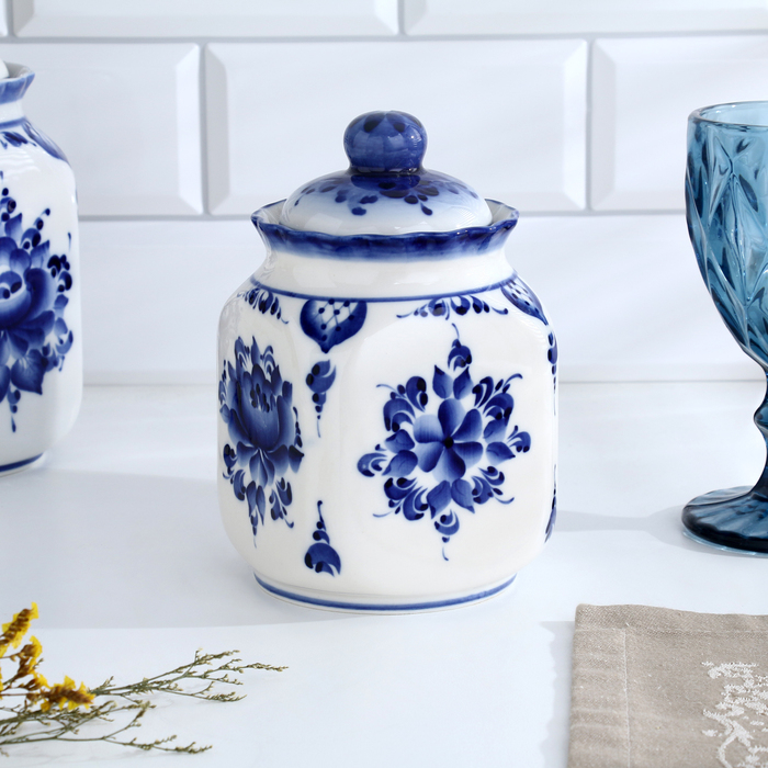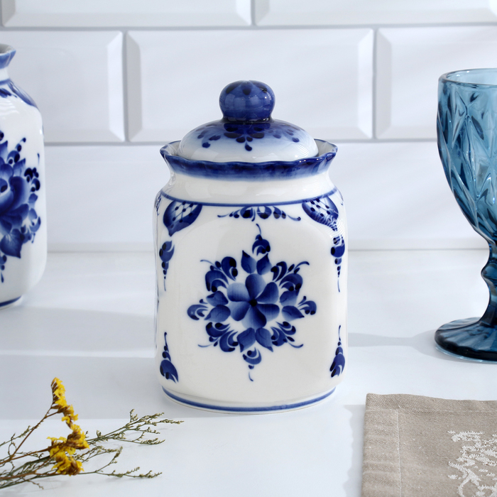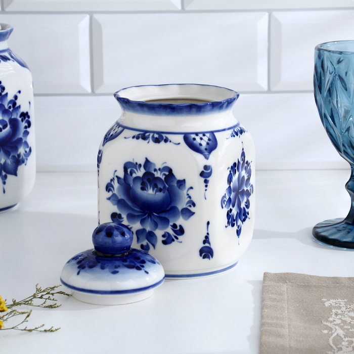 Банка для сып.продуктов "КАСКАД", 16,5см, V-0,95л, авт.Шибаев С.,гжель