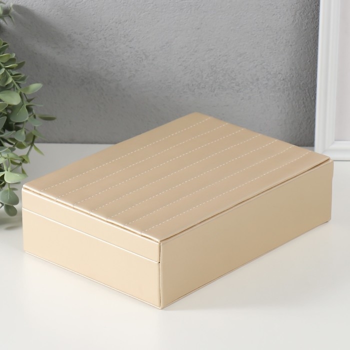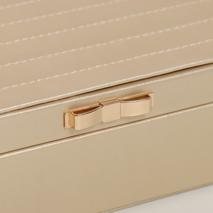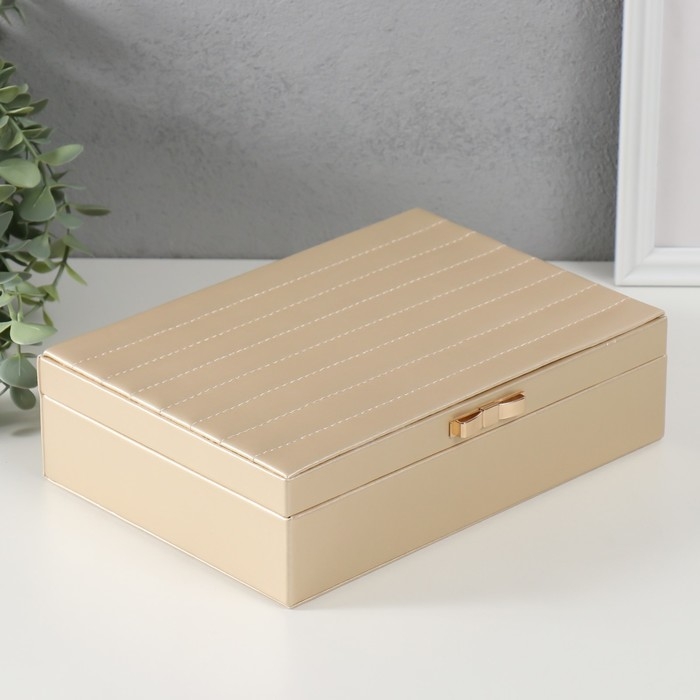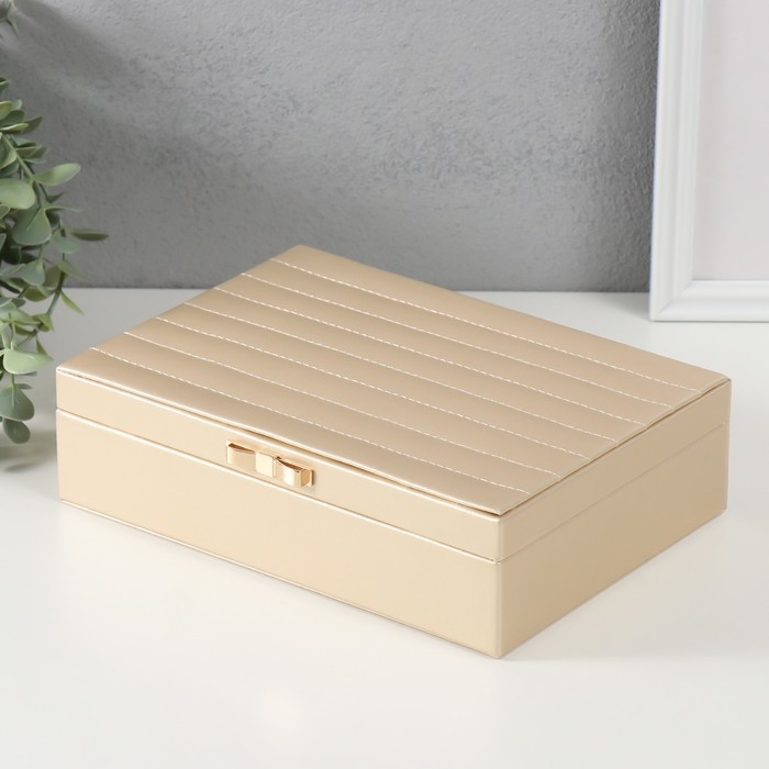 Шкатулка кожзам для украшений "Стёганная. Полоски. Бант" золото 17х24х7 см