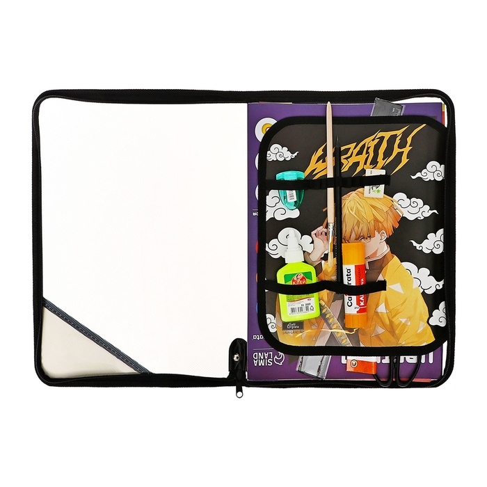 Папка для труда А4, молния вокруг, откидная планка, пластиковая, ПТР-1, с наполнением 10 предметов, для мальчика, Calligrata "Аниме клинок"