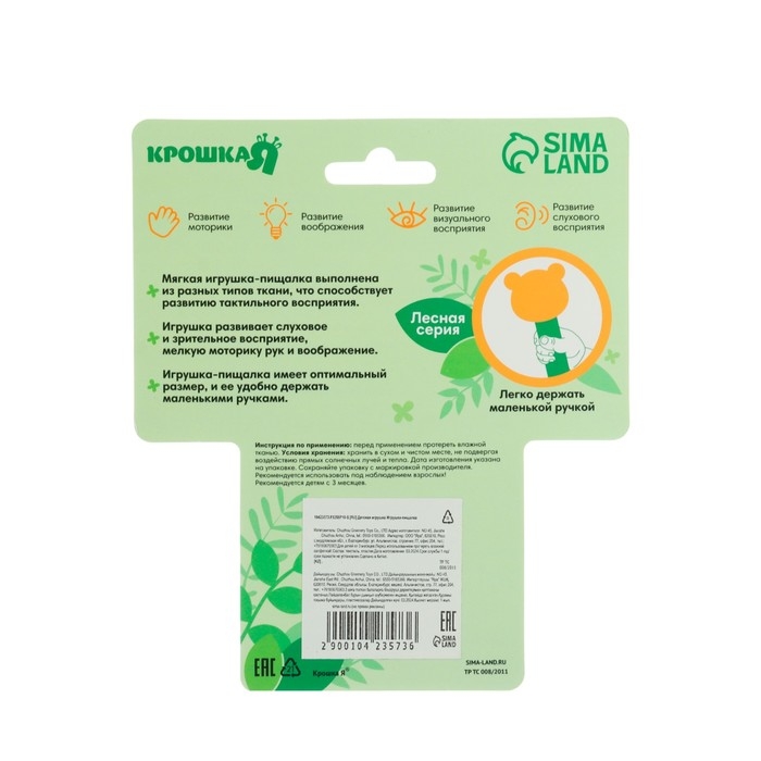 Игрушка - пищалка "Мишка" с погремушкой