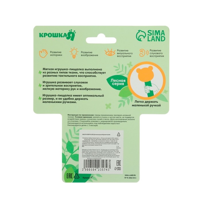 Игрушка - пищалка "Зайка" с погремушкой