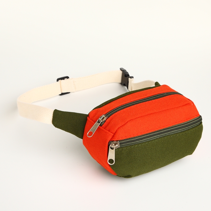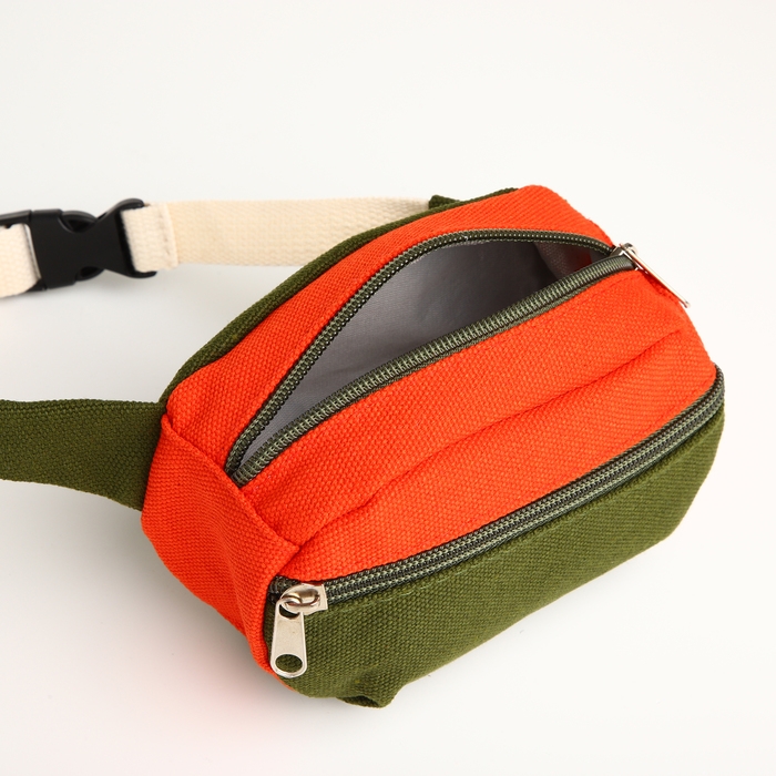 Сумка детская поясная на молнии, наружный карман, цвет хаки/оранжевый
