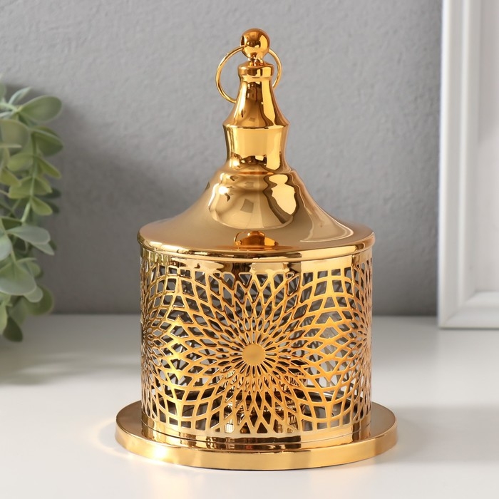 Подсвечник металл на 1 свечу "Цветение" золото d=3,5 см 12,5х12,5х19 см