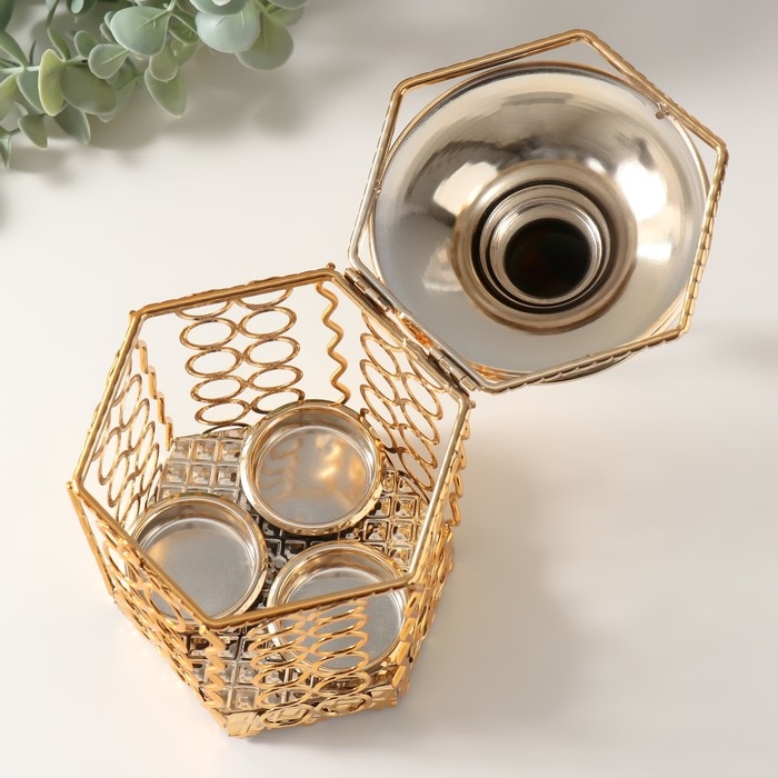 Подсвечник металл на 3 свечи "Круги" золото d=3,5 см 12х12х21.5 см