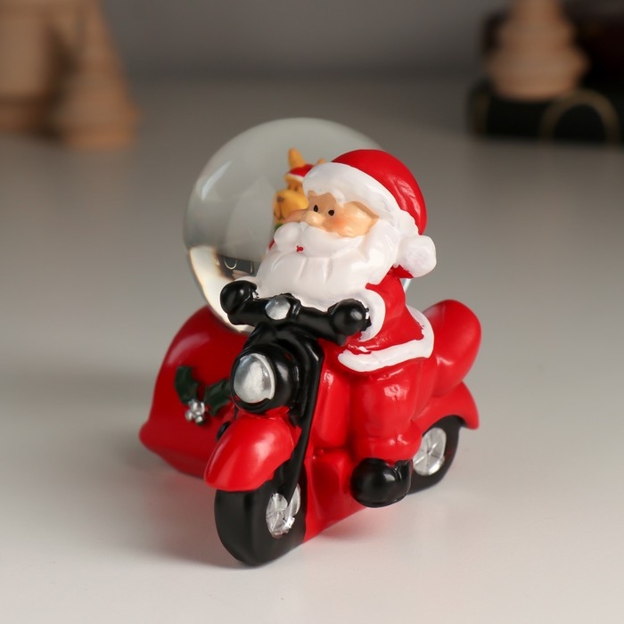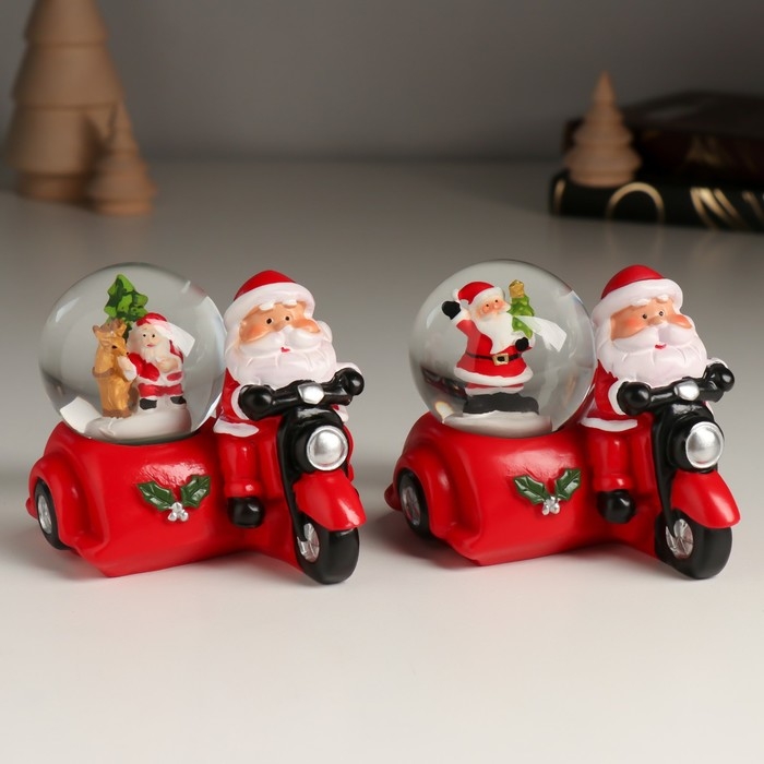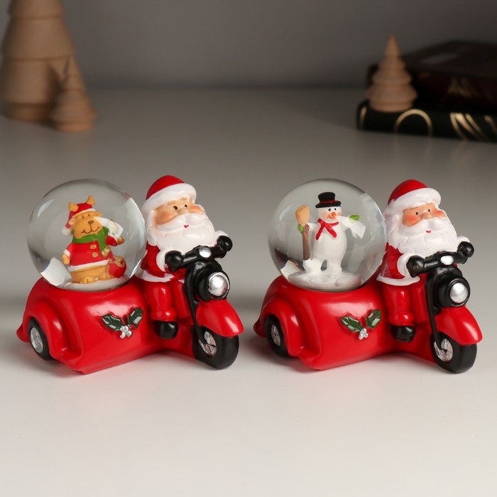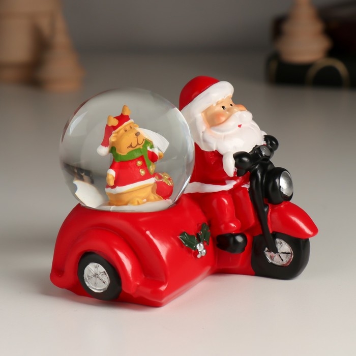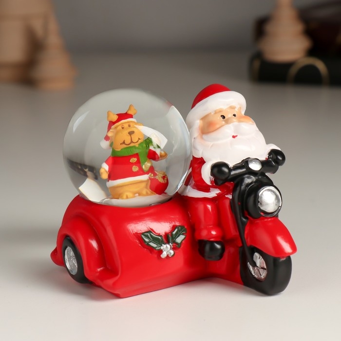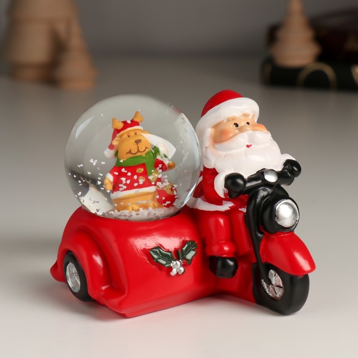 Сувенир полистоун водяной шар "Дед Мороз на мотоцикле с коляской" МИКС 7,5х8,2х7 см